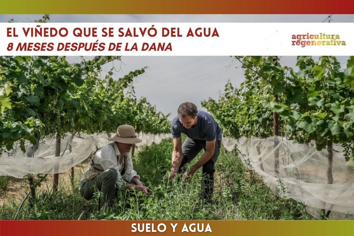 Unos días después de las riadas de Valencia de octubre 2024, el viticultor valenciano Natxo Senchermés nos mostraba en un impactante y revelador vídeo el estado en que había quedado el suelo de su finca tras la descomunal e inesperada tromba de agua. El vídeo, titulado «El viñedo que se salvó del agua», grabado unos días después de las lluvias torrenciales, muestra por una parte la extrema vulnerabilidad de los suelos desnudos y por otra, la resiliencia de los suelos cubiertos y bien gestionados, que absorbieron el agua sin sufrir pérdida alguna.