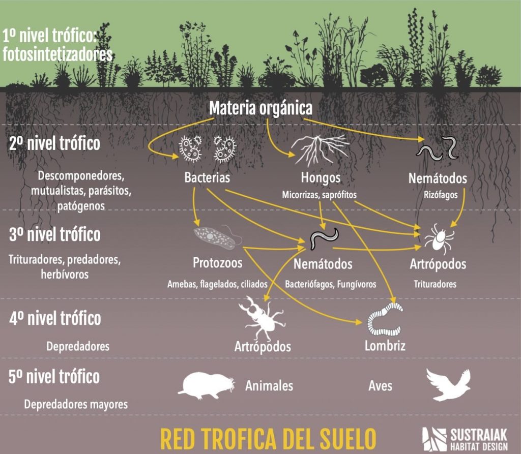 •  Supone una barrera biológica contra enfermedades, plagas y patógenos. Un suelo más completo y diverso a nivel microbiológico es mucho más fuerte y resistente frente a cualquier amenaza. Un suelo lleno de vida, de microbiología diversa, es un suelo sano, donde las patologías y plagas no tienen mucho que hacer.